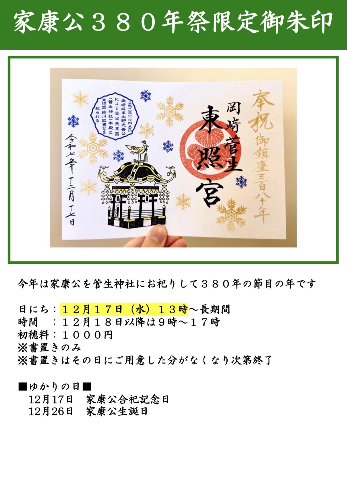 特別な日を記念した限定御朱印もございます。